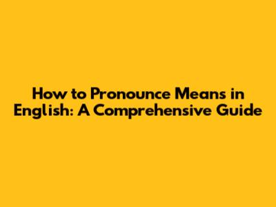 Pronouncing Means: A Simple English Guide