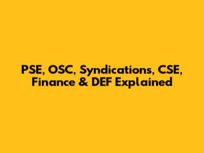PSE, OSC, Syndications, CSE, Finance & DEF Explained