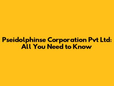 Pseidolphinse Corporation Pvt Ltd: All You Need To Know