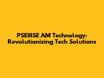PSEIIISE AM Technology: Revolutionizing Tech Solutions
