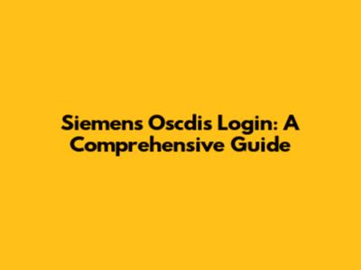 Siemens Oscdis Login: A Comprehensive Guide