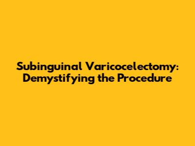 Subinguinal Varicocelectomy: Demystifying the Procedure