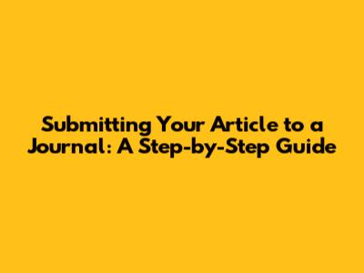 Submitting Your Article To A Journal: A Step-by-Step Guide