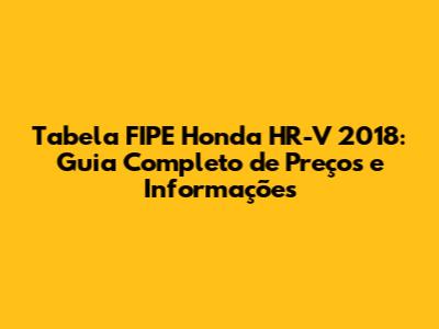 Além da Tabela FIPE, existem outros lugares onde você pode encontrar informações importantes sobre o Honda HR-V 2018.
