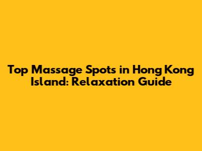 Top Massage Spots In Hong Kong Island: Relaxation Guide