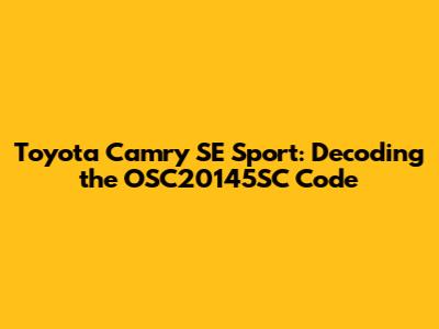 Toyota Camry SE Sport: Decoding The OSC20145SC Code