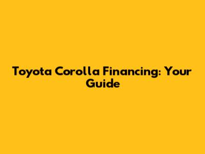 Toyota Corolla Financing: Your Guide