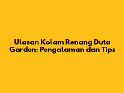 Ulasan Kolam Renang Duta Garden: Pengalaman Dan Tips