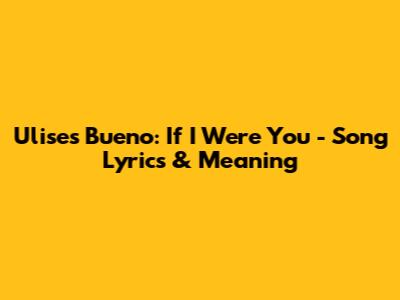 Ulises Bueno: If I Were You - Song Lyrics & Meaning