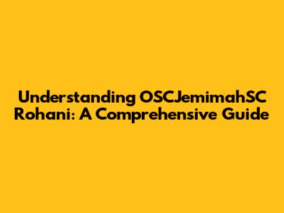 Understanding OSCJemimahSC Rohani: A Comprehensive Guide