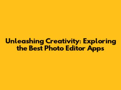 Unleashing Creativity: Exploring The Best Photo Editor Apps