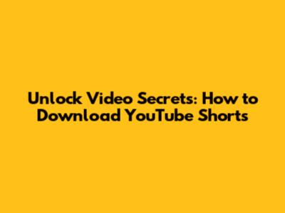 Unlock Video Secrets: How To Download YouTube Shorts