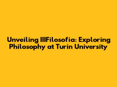 Unveiling IIIFilosofia: Exploring Philosophy At Turin University